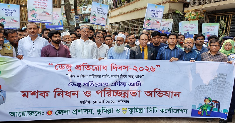 কুমিল্লায় ডেঙ্গু প্রতিরোধ দিবস উপলক্ষে বর্ণাঢ্য র্যালি ও পরিচ্ছন্নতা অভিযান