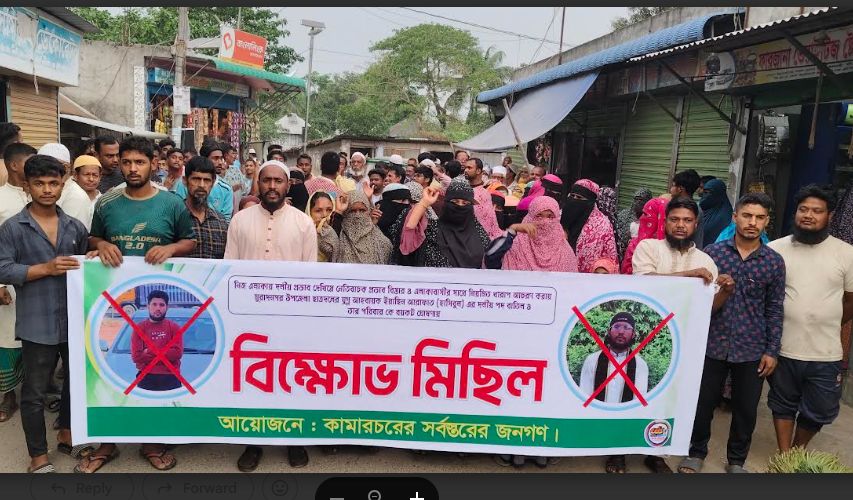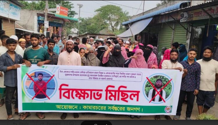 সিটিভি নিউজ।। আবুল কালাম আজাদ, কুমিল্লা প্রতিনিধিঃ==================নিজ এলাকায় দর্শীয় প্রভাব দেখিয়ে নেতিবাচক প্রভাব বিস্তার ও এলাকাবাসীর সাথে নিয়মিত খারাপ আচরণ করায় মুরাদনগর উপজেলা ছাত্রদলের যুগ্ম আহবায়ক ইয়াছিন আরাফাত (হাসিবুল) এর দলীয় পদ বাতিল ও তার পরিবার কে বয়কট ঘোষণায় বিক্ষোভ মিছিল করেছে কামারচরের সর্বস্তরের জনগণ। গতকাল বুধবার বিকেলে কুমিল্লা জেলা মুরাদনগর উপজেলা কামাল্লা ইউনিয়ন কামারচর গ্রামের বাজারে স্থানীয় নারী ও পুরুষ এ মানববন্ধন ও বিক্ষোভ মিছিল অংশগ্রহণ করেন।
