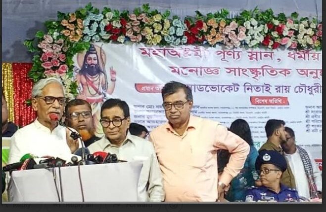 সিটিভি নিউজ, এম আর কামাল, নিজস্ব প্রতিবেদক, নারায়ণগঞ্জ : নারায়ণগঞ্জের বন্দর উপজেলার লাঙ্গলবন্দ-এ মহাঅষ্টমী স্নান উৎসবে অংশ নিয়ে সম্প্রীতি, বৈচিত্র্য ও জাতীয় ঐক্যের ওপর গুরুত্বারোপ করেছেন সংস্কৃতিমন্ত্রী নিতাই রায় চৌধুরী।