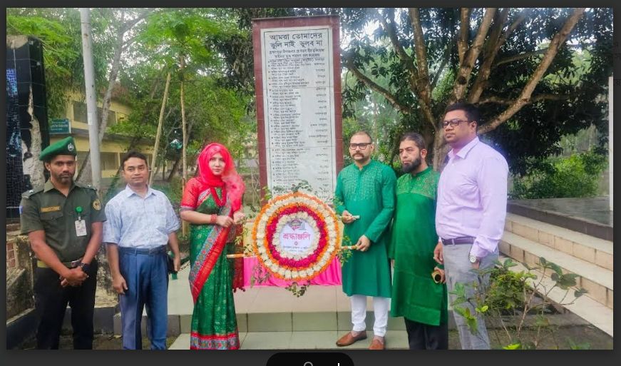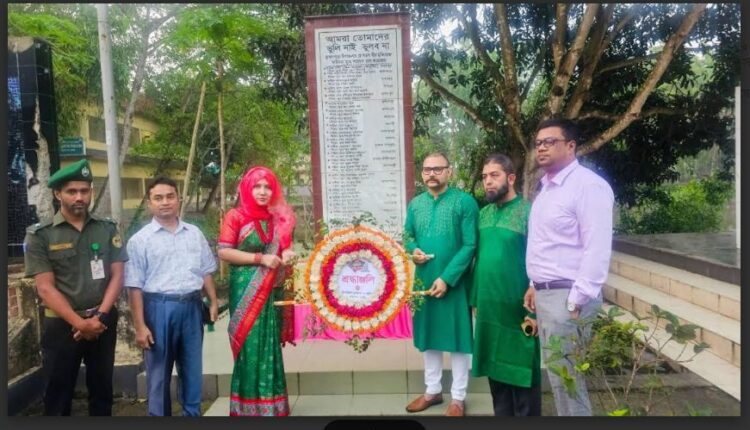 সকালে স্থানীয় স্মৃতিসৌধে উপজেলা প্রশাসনের পক্ষ থেকে পুষ্পস্তবক অর্পণ করেন উপজেলা নির্বাহী কর্মকর্তা মাহমুদা জাহান। পরে বিএনপির নেতাদের মধ্যে সাবেক সাধারণ সম্পাদক ভিপি সরকার জহিরুল হক মিঠুন, সহসভাপতি মহসিন কবির সরকার এবং যুগ্ম সাধারণ সম্পাদক নজরুল ইসলামসহ অন্যরা পুষ্পস্তবক অর্পণ করেন।
