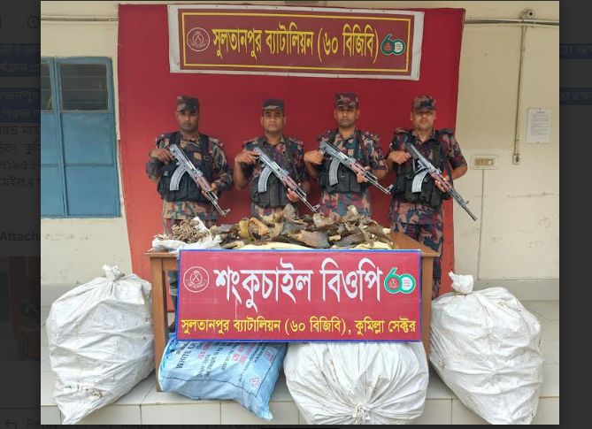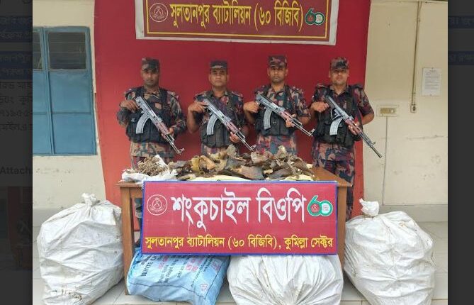বুড়িচংয়ে ৬০ বিজিবির অভিযানে সামুদ্রিক হাঙ্গরের পাখা ও সি-হর্স জব্দ