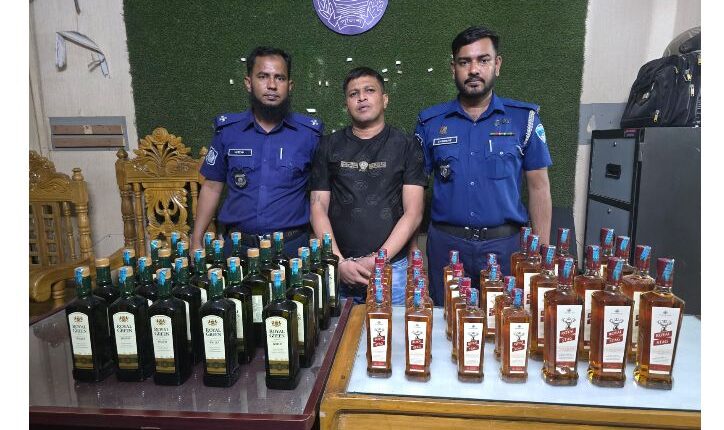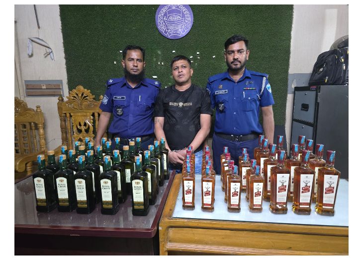 ৫৪ বোতল বিদেশী মদ সহ সুমন সাহাকে গ্রেফতার করেছে কোতয়ালী থানা পুলিশ