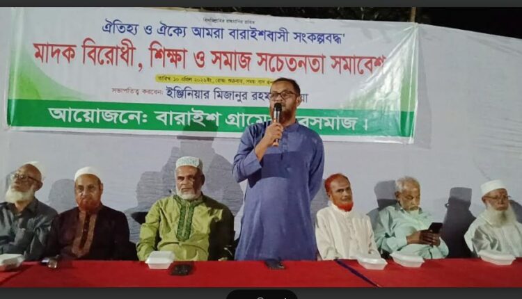 সিটিভি নিউজ।। মনোয়ার হোসেন, কুমিল্লা:সংবাদদাতা জানান ======= “ঐতিহ্য ও ঐক্যে আমরা বারাইশবাসী সংকল্পবদ্ধ” এ স্লোগানকে সামনে রেখে এলাকা থেকে মাদক নির্মূলের মহান উদ্দেশ্যে মাদক বিরোধী, শিক্ষা ও সমাজ সচেতনতা সমাবেশ অনুষ্ঠিত হয়েছে।