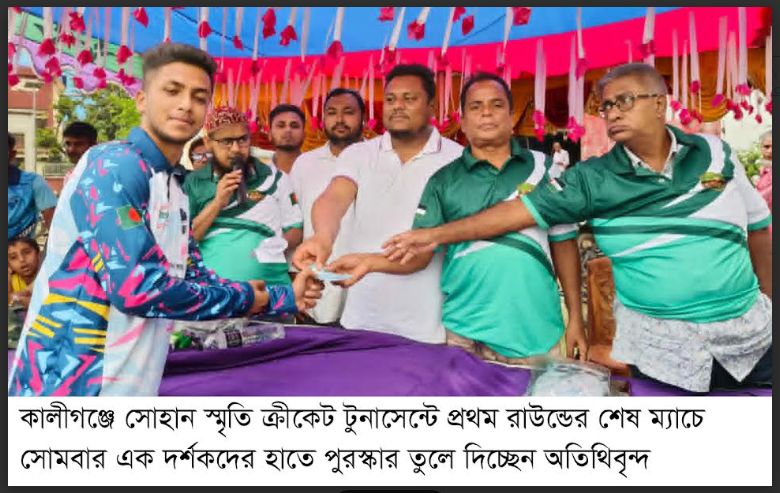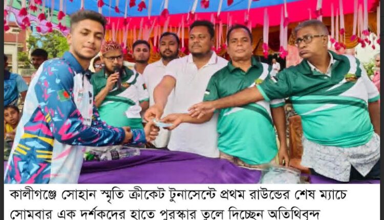 সোহান স্মৃতি ক্রিকেট টুর্নামেন্ট ২০২৬ কালীগঞ্জ পৌর ৭ নং ওর্য়াড দলের জয়লাভ