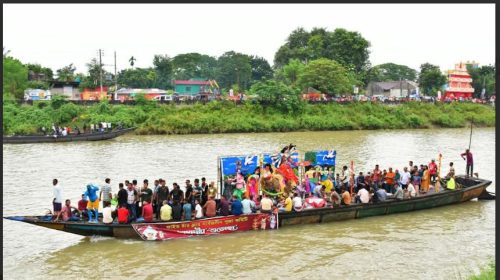 নওগাঁর ছোট যমুনা নদীতে শারদীয় প্রতিমা বিসর্জনে আইন-শৃঙ্খলা রক্ষাকারী বাহিনীর টহল